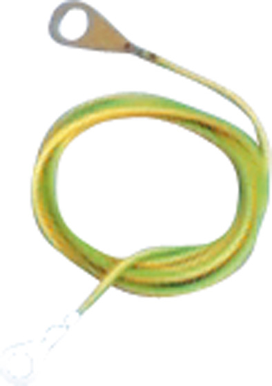 Zemnící propojovací kabel 1 m pro elektrický ohradník - žlutozelený kabel o délce 1 m, který má na obou koncích mosazná přípojná očka a používá se k propojení zdroje se zemnící tyčí nebo k propojení zemnících tyčí ohradníku.
